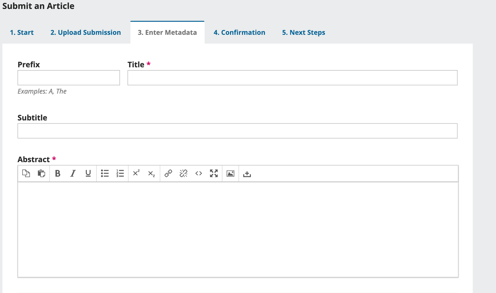 Input "Title" serta "abstract atau ringkasan" (prefix dan sub-title di lewatkan saja)