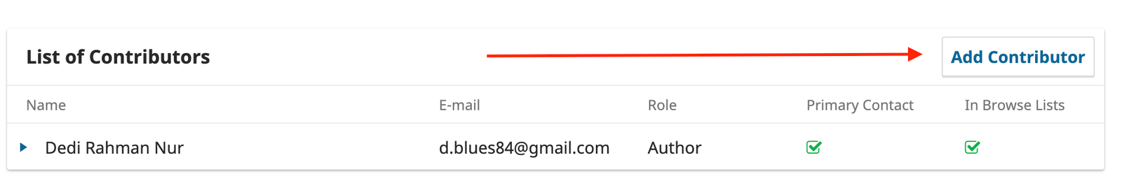 Selanjutnya turun ke bawah ke bagian list of contributors klik "Add Contributor" untuk menambahkan data anggota (PASTIKAN TIDAK ADA ANGGOTA YANG TERLUPA)
