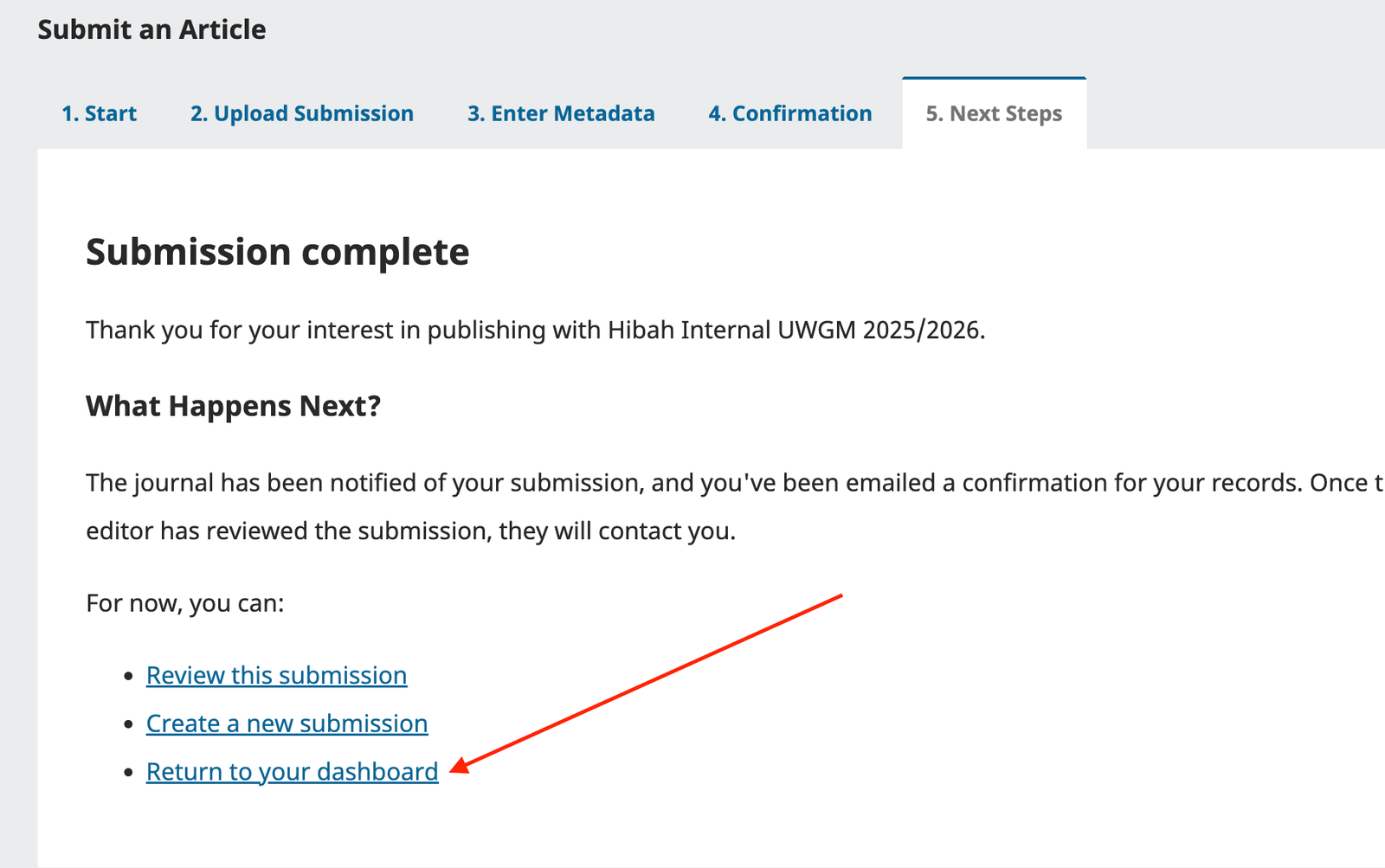 setelah itu akan ke bagian confirmation lalu klik "Finish Submission" dan "Return to your dashboard" atau jika ingin lanjut ke skema lain silahkan pilih "create a new submission" dan lakukan hal yang sama seperti sebelum nya.